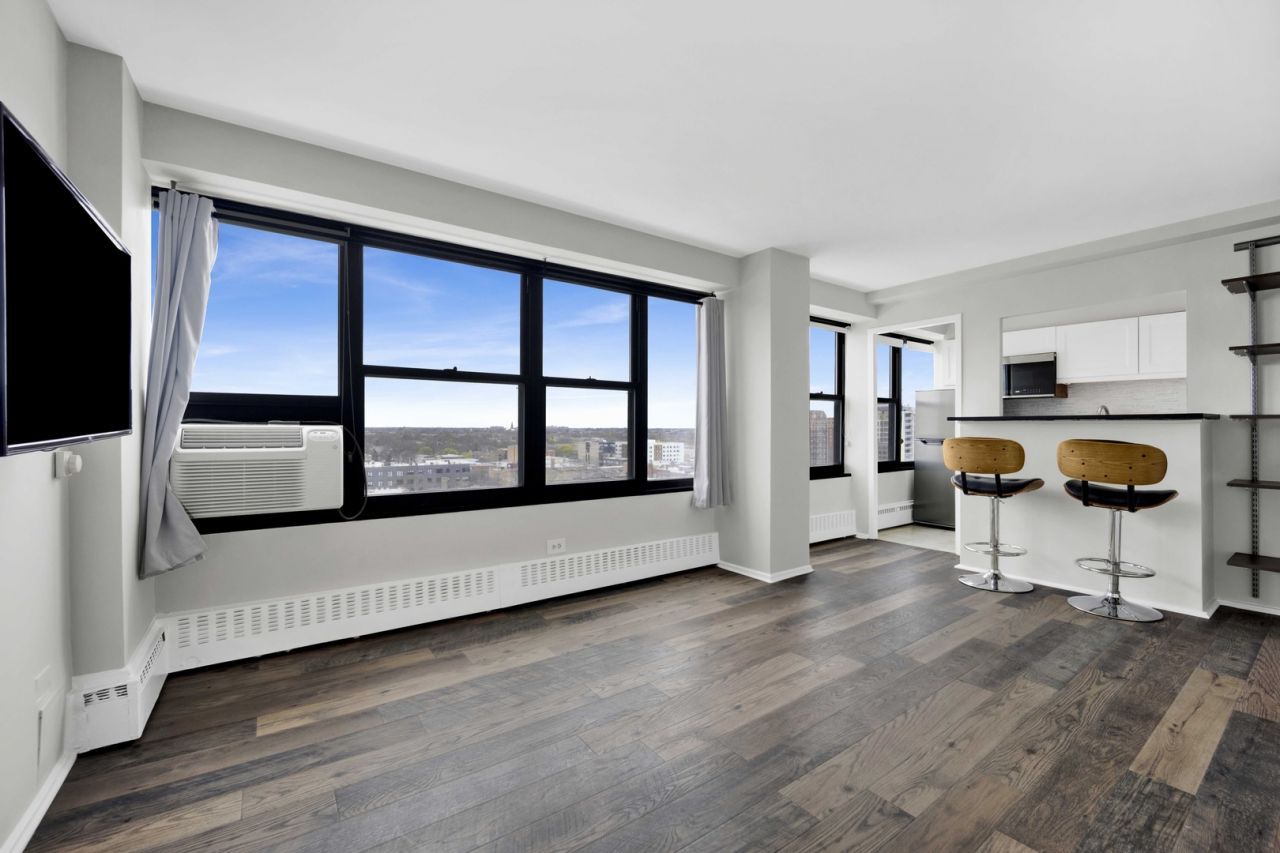 Prepare to be impressed! This beautifully renovated, light filled, studio home lives large and checks all the boxes. All new everything... high performance engineered hardwood flooring, sleek kitchen with white cabinetry, stainless appliances, including dishwasher and microwave, stainless undermount sink, custom marble backsplash, quartz counters and breakfast bar with impressive bar height seating. New bath vanity with storage and modern lighting. Other remarkable move-in ready features include a fabulous Queen-sized Murphy bed with smart built-in shelving, an organized oversized walk-in closet, linen closet and formal entry. Pet friendly. Building amenities include 24-hour door staff, on-site management office with building engineer, receiving room, bike room, fitness center, and coin laundry. Enjoy the excellent Edgewater location! Easy walk to the Red Line, Sheridan Road 147 & 151 buses, the beach/lakefront, great restaurants, Whole Foods Market, Aldi, Walgreens, the famous Moody's Pub and Loyola University.